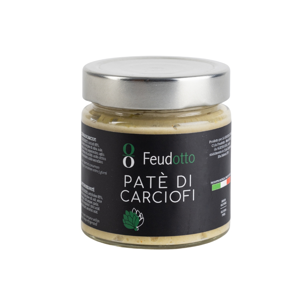Soft and tasty artichoke patè, made in a traditional way. From artichokes cultivated in our territory, this product has a delicate flavor, typical of the Sicilian tradition. After opening the jar, add a little EVO oil and keep in a cool, dry place.